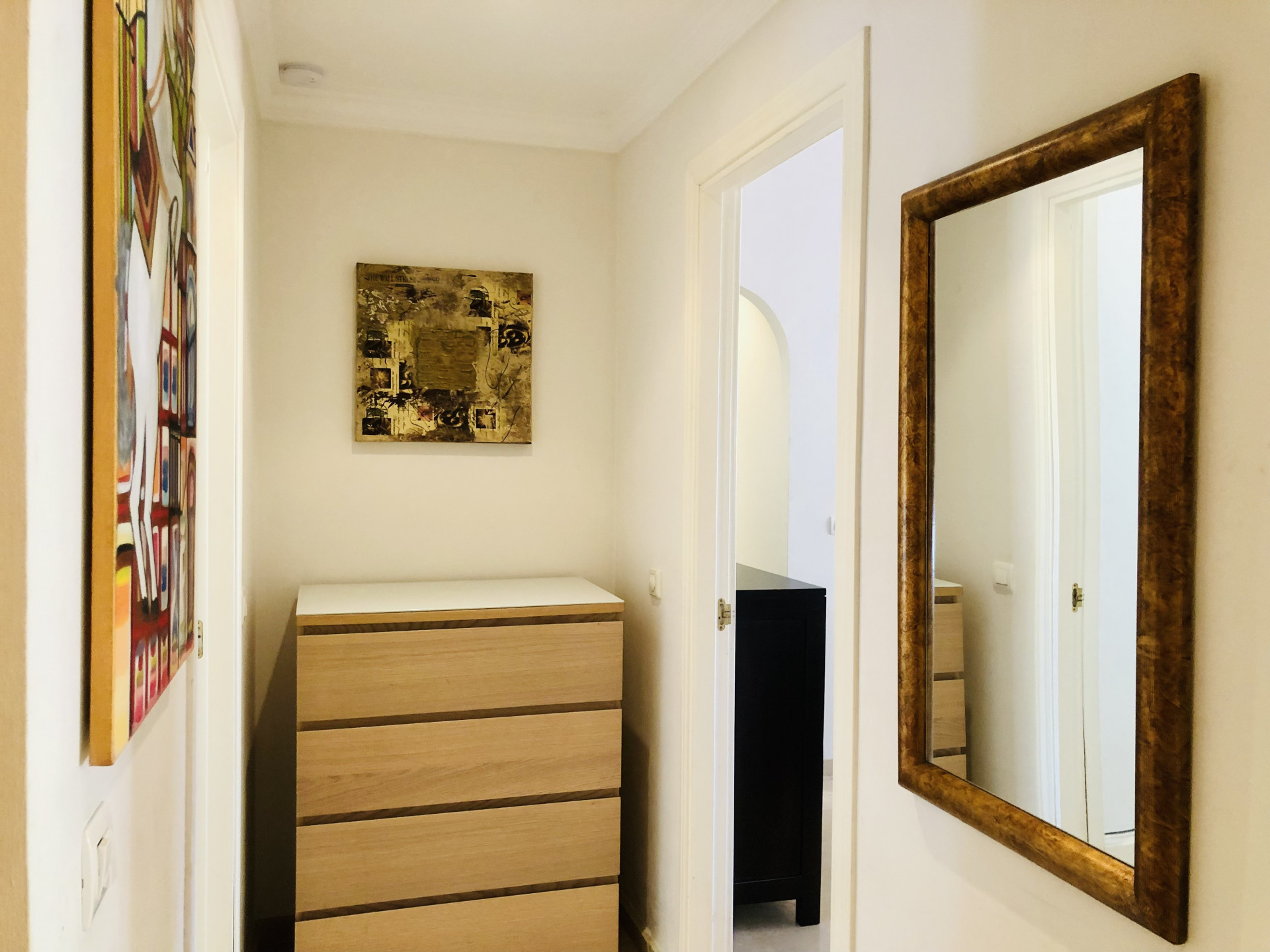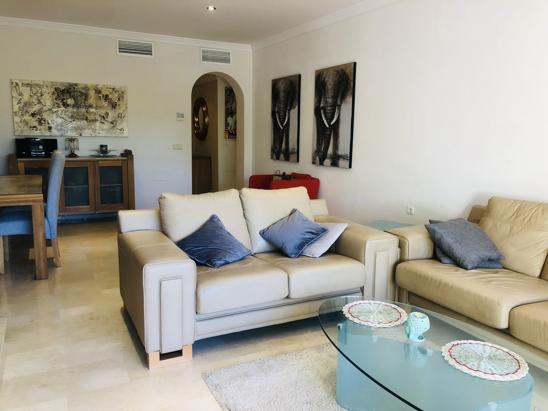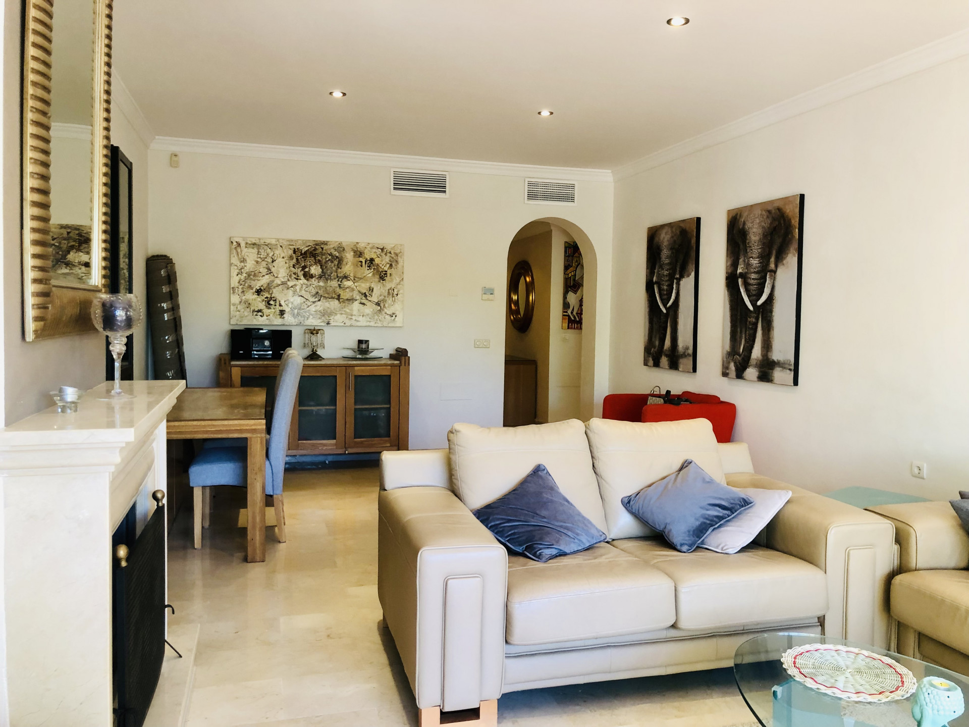 This beautiful apartment is situated in the highly desirable area of La Elviria in Marbella East, offering a perfect blend of convenience and tranquility. Located just minutes away from the beach, shopping centers, supermarkets, pharmacies, restaurants, and other essential amenities, this property promises a lifestyle of comfort and ease. Nestled within a gated community, the apartment boasts access to a swimming pool and well-maintained gardens, providing residents with a serene and relaxing environment. The interior of the apartment features a spacious living room adorned with a fireplace, offering a cozy ambiance and direct access to the terrace, where you can enjoy outdoor living and stunning views. The fully fitted kitchen and utility room provide practicality and convenience for daily living. This apartment comprises two bedrooms, each with its own ensuite bathroom equipped with a Jacuzzi, shower, and bathtub. Both bedrooms benefit from exterior views and underfloor heating, ensuring comfort throughout the year. Additionally, there is a guest toilet for added convenience. With its southwest orientation, the apartment enjoys abundant natural light, creating a warm and inviting atmosphere. Luxury details such as marble floors, a security door, electric shutters, and a dressing room in the master bedroom further enhance the appeal of this property. Whether you are seeking a permanent residence, a vacation home, or an investment opportunity, this apartment offers versatility and potential. The high demand for rental properties in the area makes it an attractive option for both long-term and short-term rentals, providing a lucrative investment opportunity.