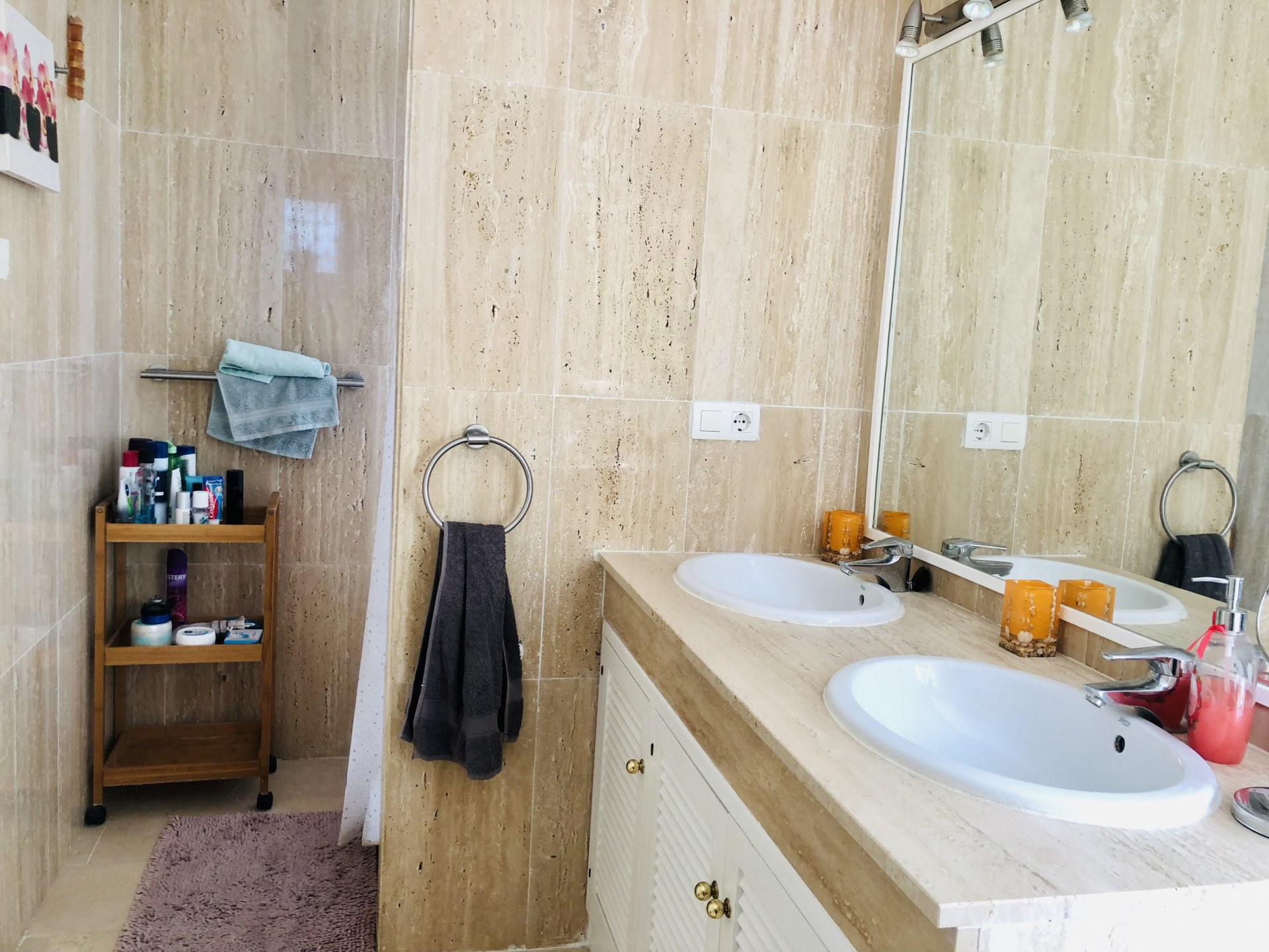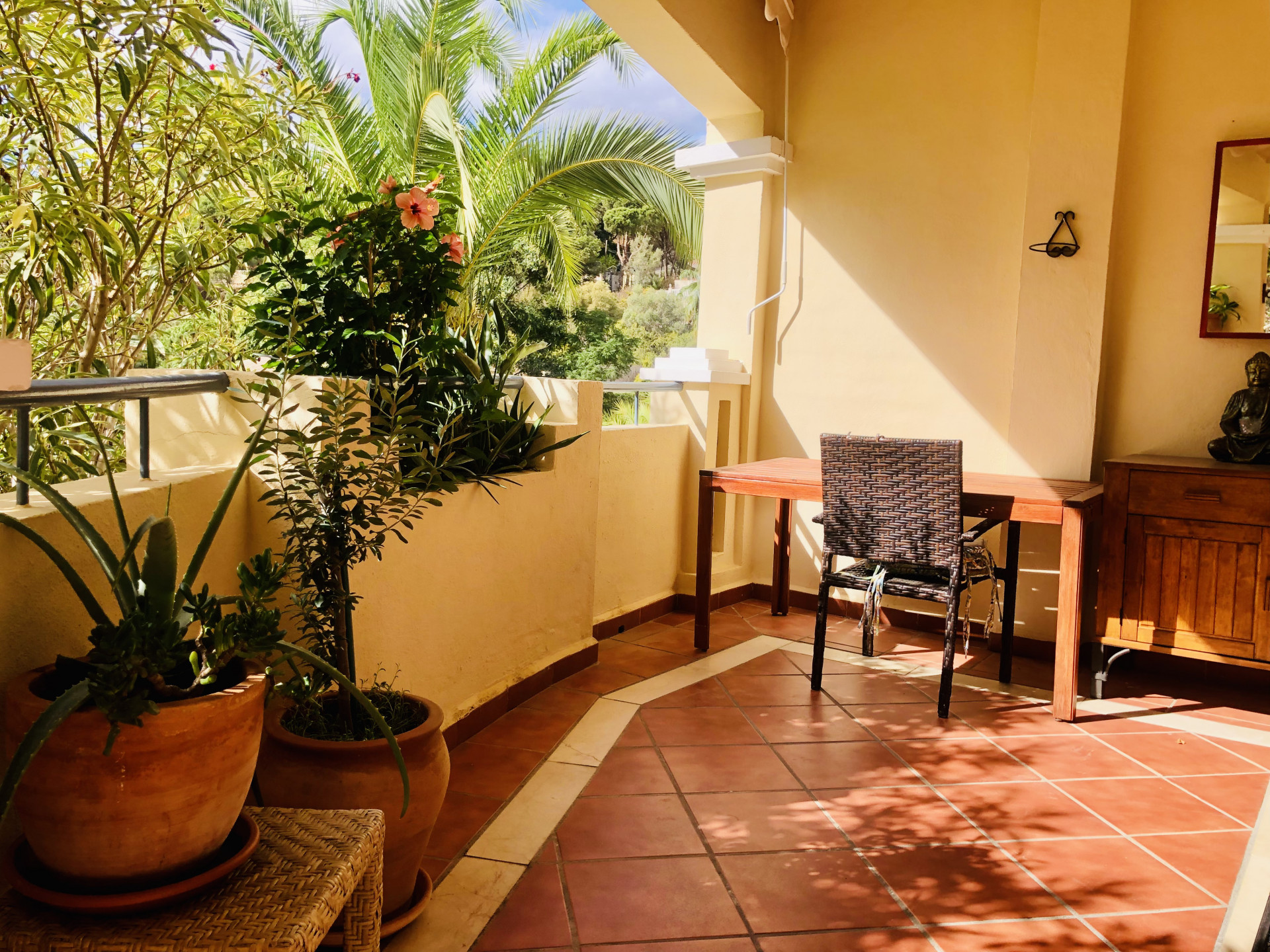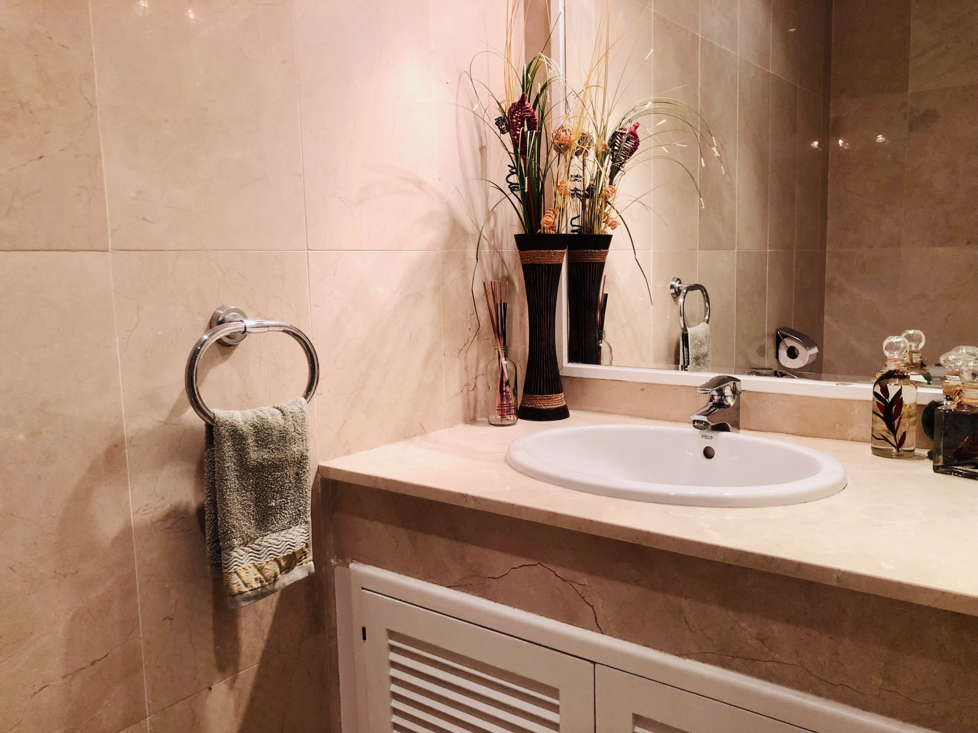 This beautiful apartment is situated in the highly desirable area of La Elviria in Marbella East, offering a perfect blend of convenience and tranquility. Located just minutes away from the beach, shopping centers, supermarkets, pharmacies, restaurants, and other essential amenities, this property promises a lifestyle of comfort and ease. Nestled within a gated community, the apartment boasts access to a swimming pool and well-maintained gardens, providing residents with a serene and relaxing environment. The interior of the apartment features a spacious living room adorned with a fireplace, offering a cozy ambiance and direct access to the terrace, where you can enjoy outdoor living and stunning views. The fully fitted kitchen and utility room provide practicality and convenience for daily living. This apartment comprises two bedrooms, each with its own ensuite bathroom equipped with a Jacuzzi, shower, and bathtub. Both bedrooms benefit from exterior views and underfloor heating, ensuring comfort throughout the year. Additionally, there is a guest toilet for added convenience. With its southwest orientation, the apartment enjoys abundant natural light, creating a warm and inviting atmosphere. Luxury details such as marble floors, a security door, electric shutters, and a dressing room in the master bedroom further enhance the appeal of this property. Whether you are seeking a permanent residence, a vacation home, or an investment opportunity, this apartment offers versatility and potential. The high demand for rental properties in the area makes it an attractive option for both long-term and short-term rentals, providing a lucrative investment opportunity.