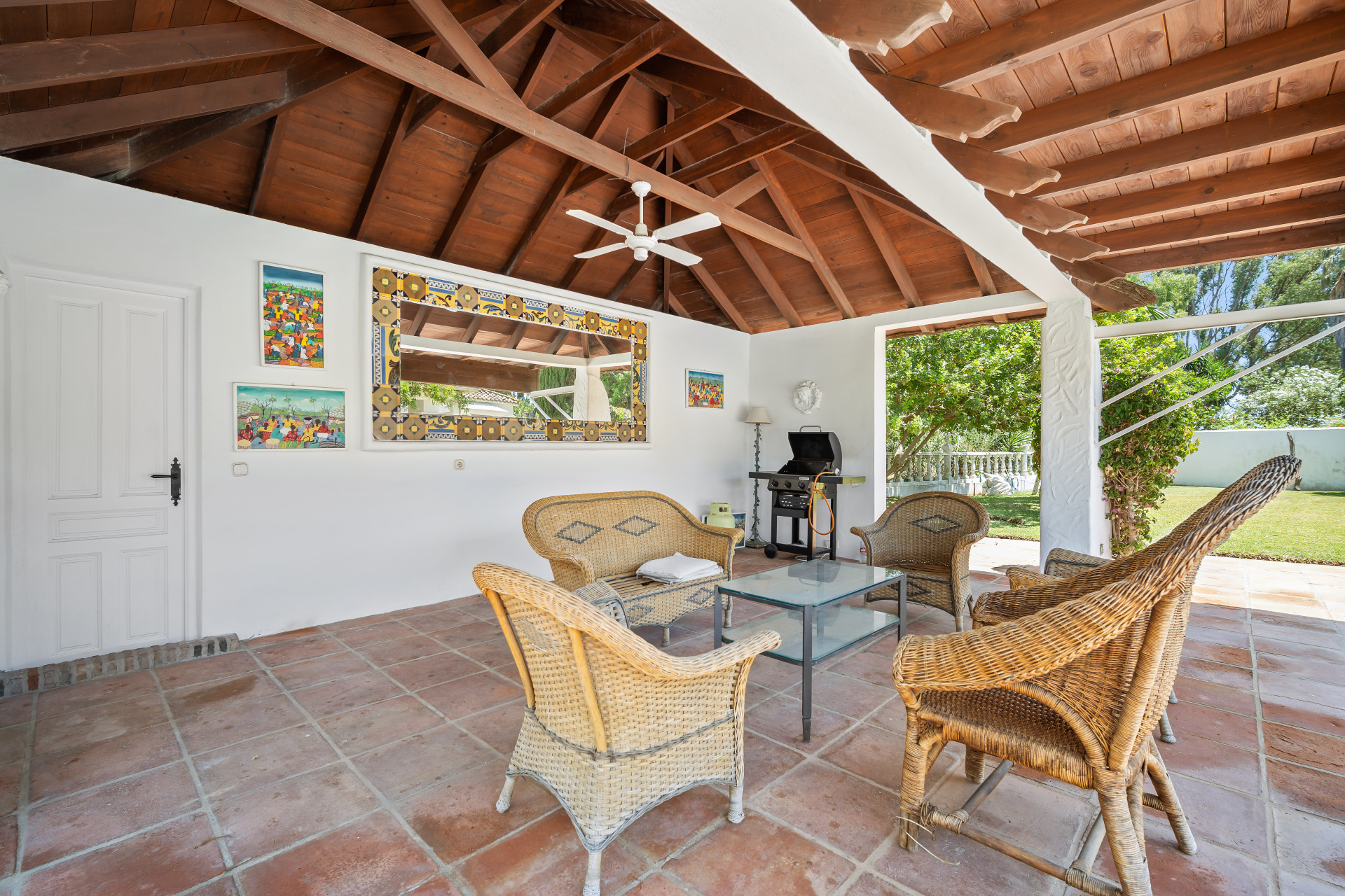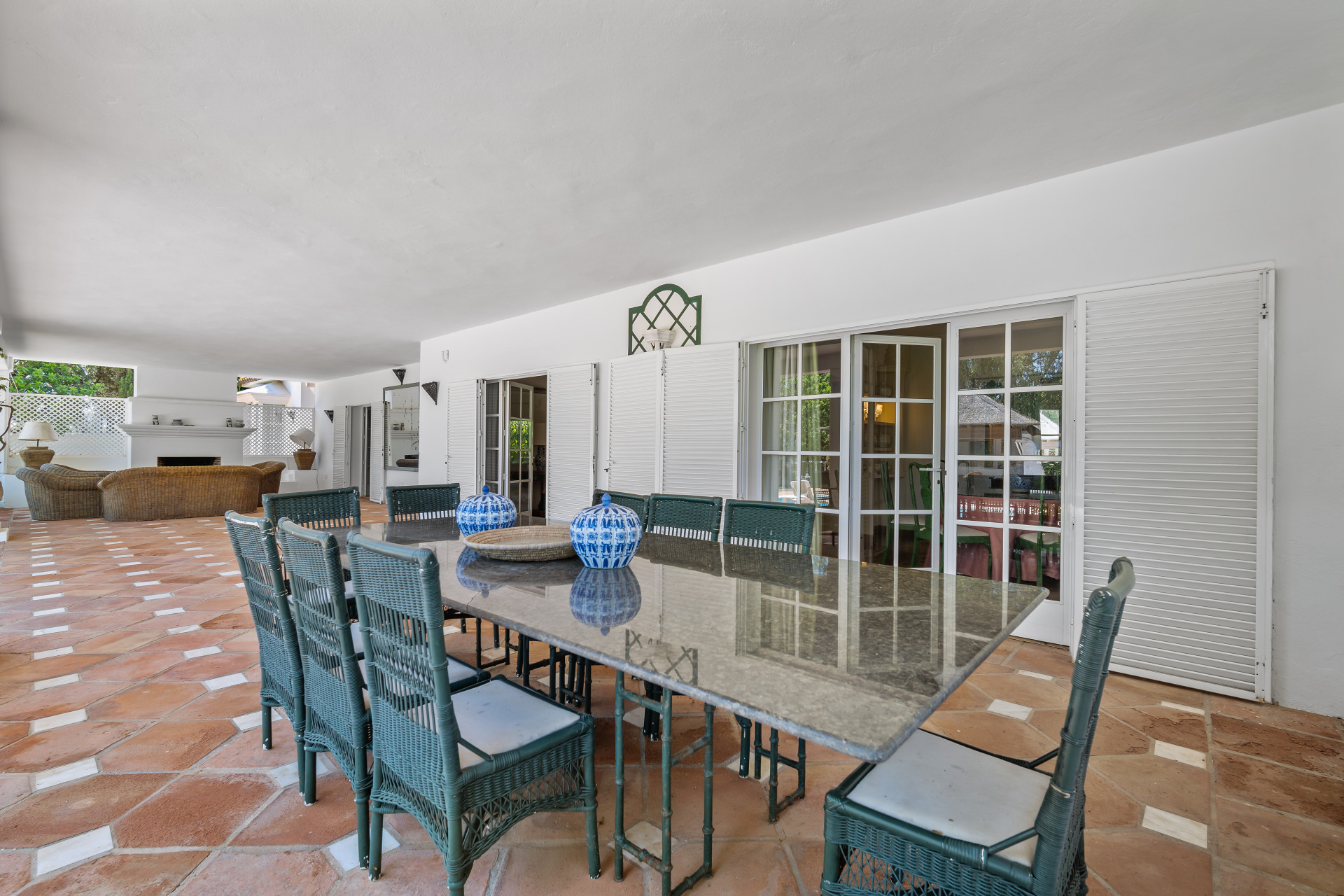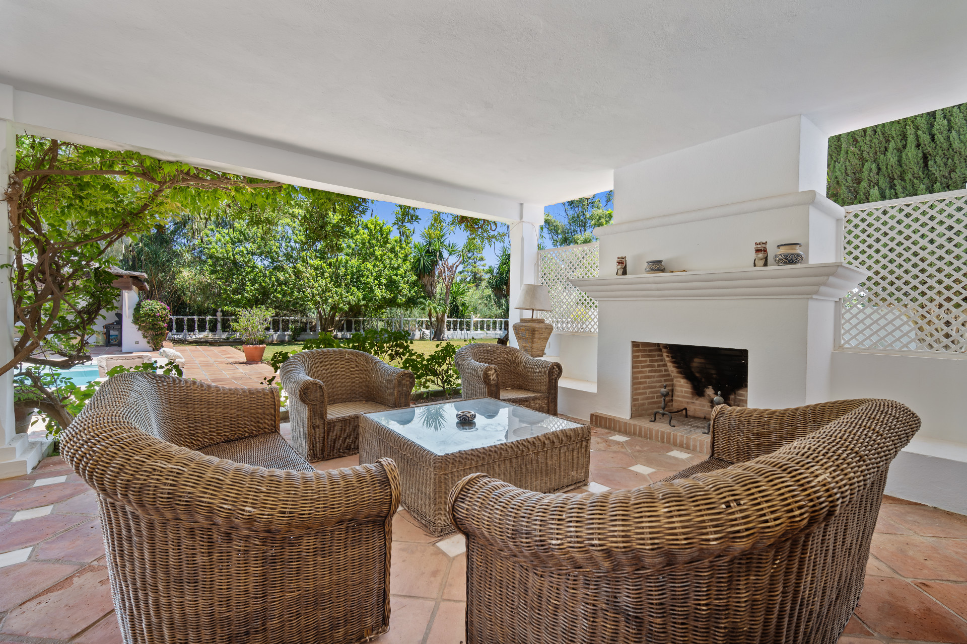 A fantastic investment opportunity located in Guadalmina Baja, just five minutes from the beach! This property is set on a large plot of 4100m2 and has the possibility to remodel and build another level or divide the plot to construct two or more independent villas. Currently the villa is distributed over one level and consists of a large living room with built in fireplace; dining room; fully fitted kitchen; master suite with lounge area and walk in wardrobe; guest suite; two guest bedrooms; two guest bathrooms; and an independent apartment for service with three bedrooms; two bathrooms; kitchen; living area; and laundry room. The property has well-kept gardens, private swimming pool and a covered BBQ area with outside toilets. Other features include hot and cold air conditioning in the master suite, double garage, double car port, shutters on the windows and fitted wardrobes.