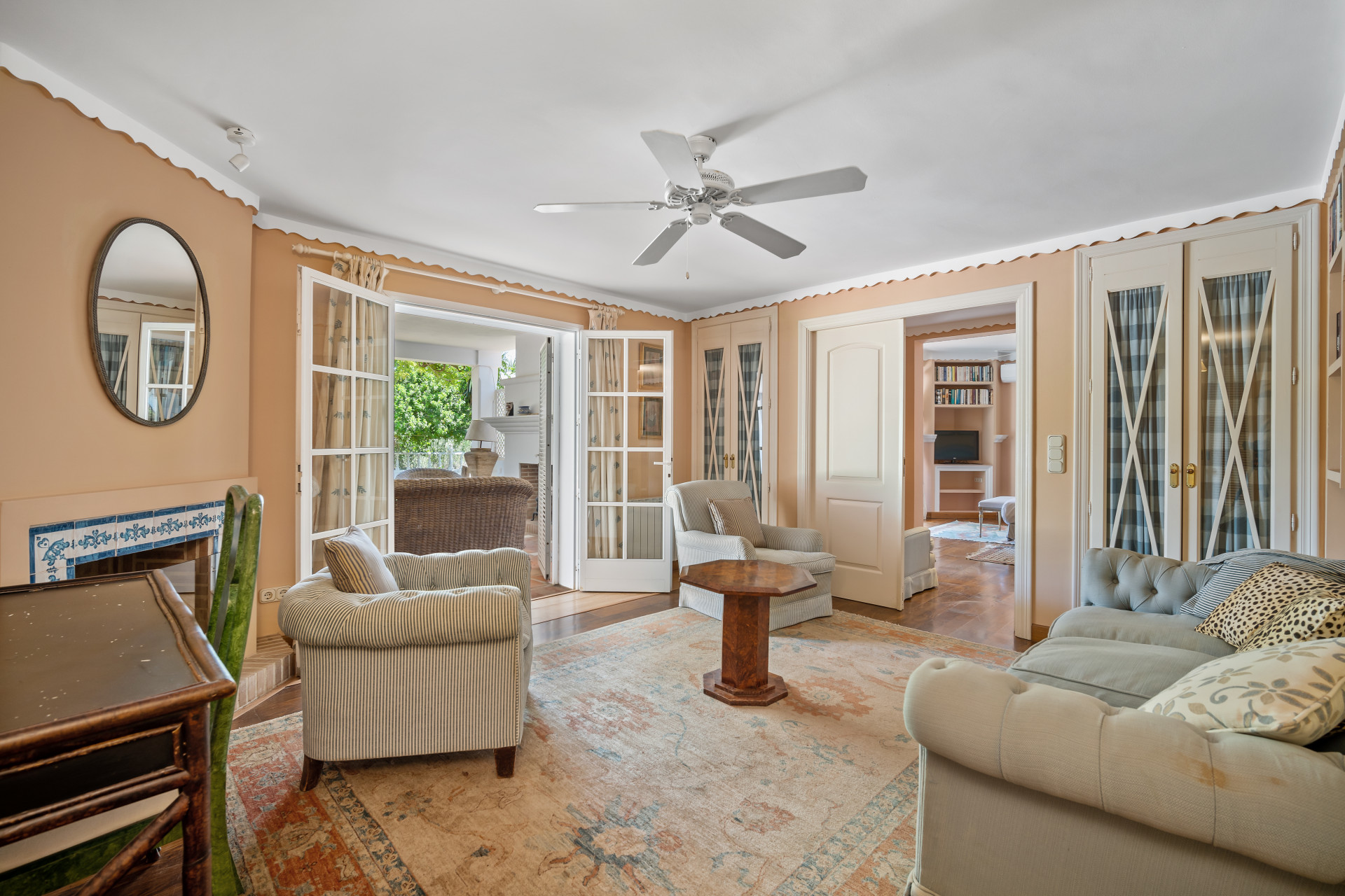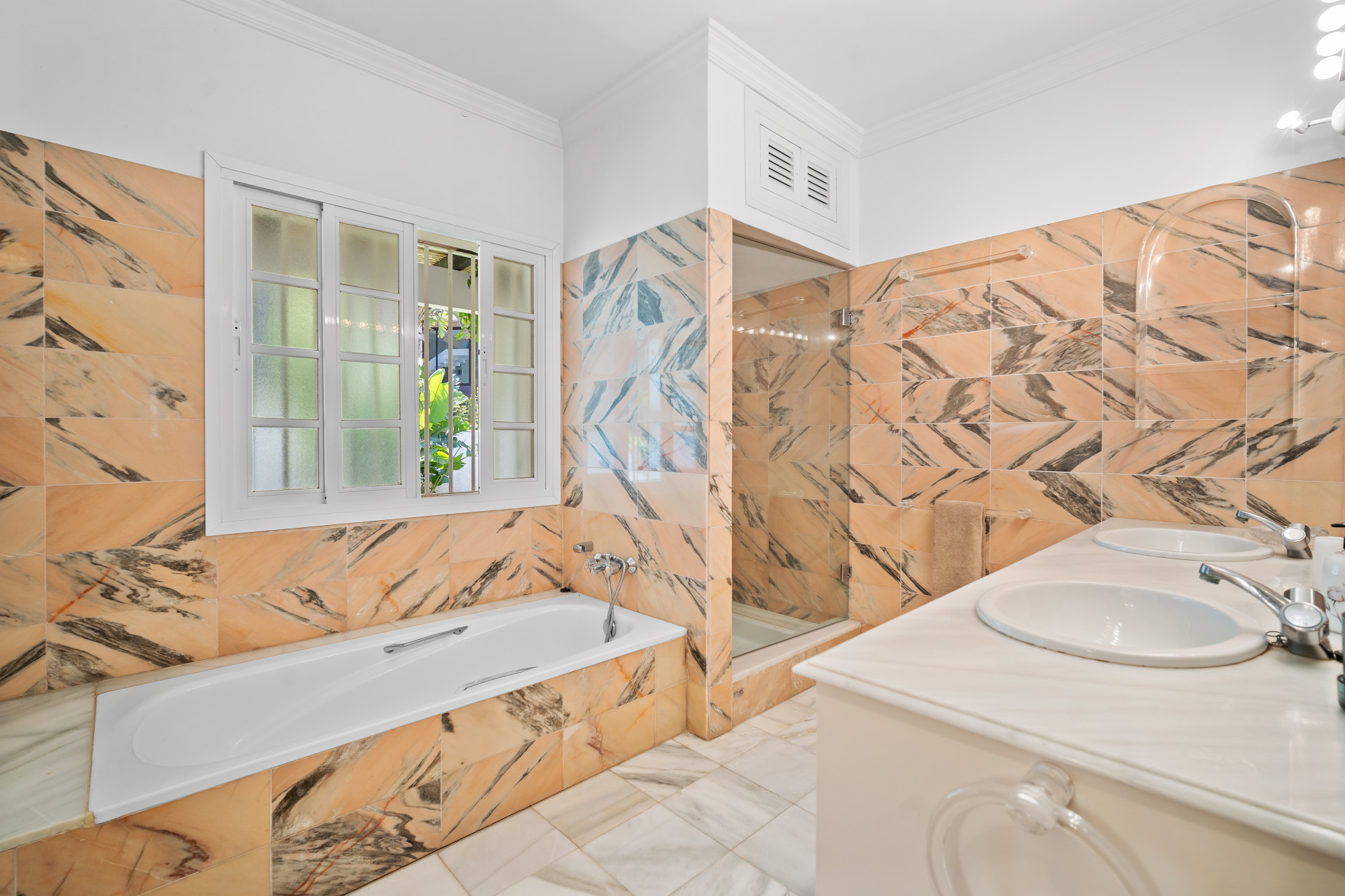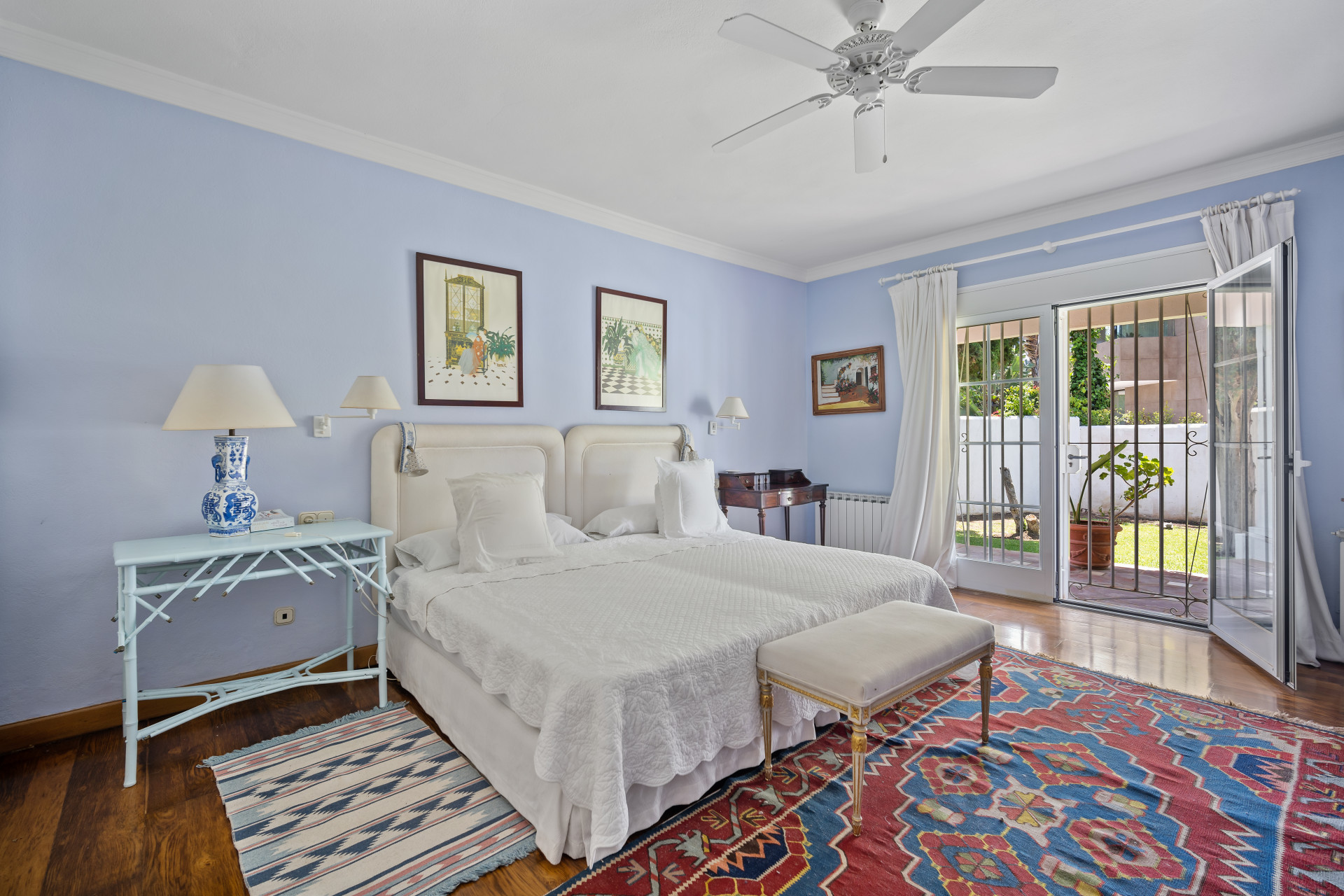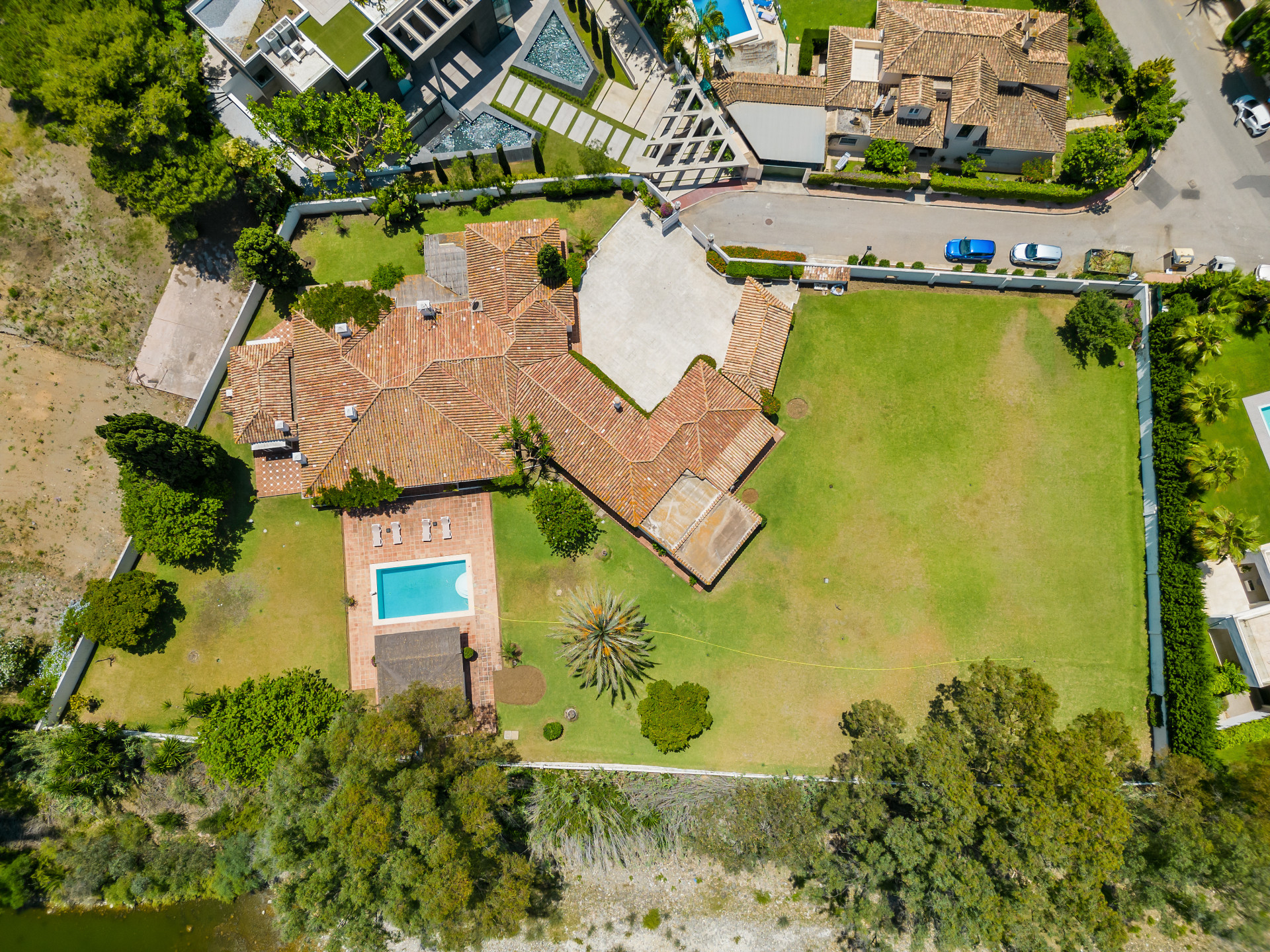 A fantastic investment opportunity located in Guadalmina Baja, just five minutes from the beach! This property is set on a large plot of 4100m2 and has the possibility to remodel and build another level or divide the plot to construct two or more independent villas. Currently the villa is distributed over one level and consists of a large living room with built in fireplace; dining room; fully fitted kitchen; master suite with lounge area and walk in wardrobe; guest suite; two guest bedrooms; two guest bathrooms; and an independent apartment for service with three bedrooms; two bathrooms; kitchen; living area; and laundry room. The property has well-kept gardens, private swimming pool and a covered BBQ area with outside toilets. Other features include hot and cold air conditioning in the master suite, double garage, double car port, shutters on the windows and fitted wardrobes.